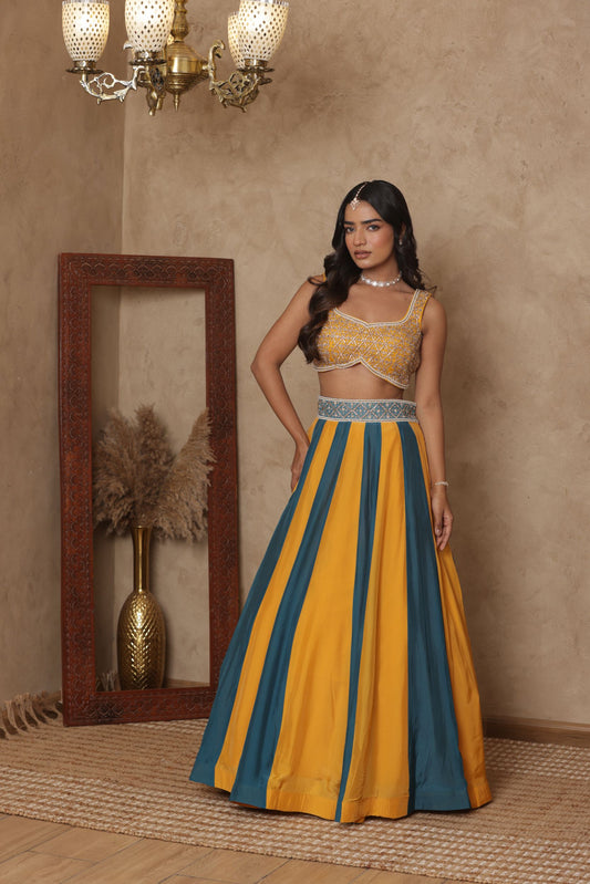 MALVIKA YELLOW-GREEN KALI EMBROIDERED LEHENGA