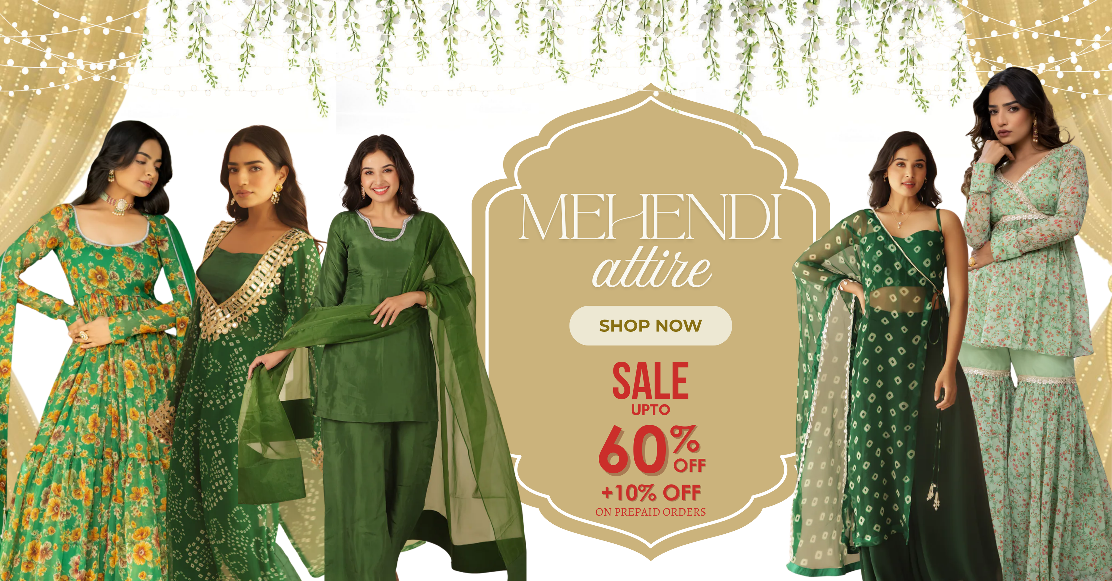 EDITHA GREEN BANDHEJ MIRROR LACE WORK FUSION SET