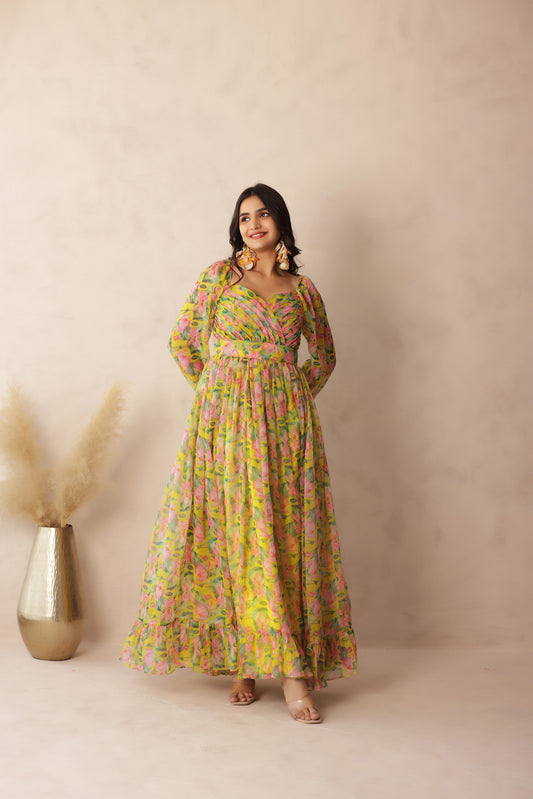 NYSA YELLOW HANDPAINTED ANARKALI SET