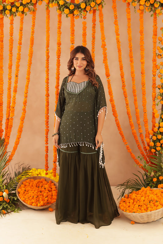 SAMAYA GREEN DETAILED KAFTAN SHARARA SET