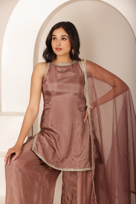 RUBAB BEIGE BROWN FARSHI SALWAR SUIT