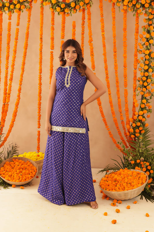 SABA BLUE SHORT DETAILED KURTI PALAZZO SET