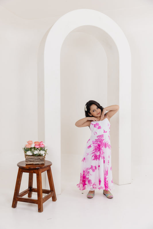 RUMI MAGENTA PINK FLORAL SIDE SLIT LONG DRESS