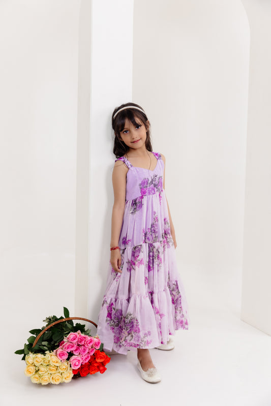 ELSA LAVENDER GREY LONG DRAPED DRESS