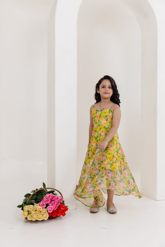 EILIYAH COTTON YELLOW FLORAL SHORT SLEEVELESS KURTI