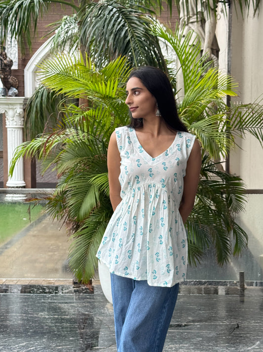 DIVIRA COTTON FLORAL SLEEVELESS SHORT KURTI