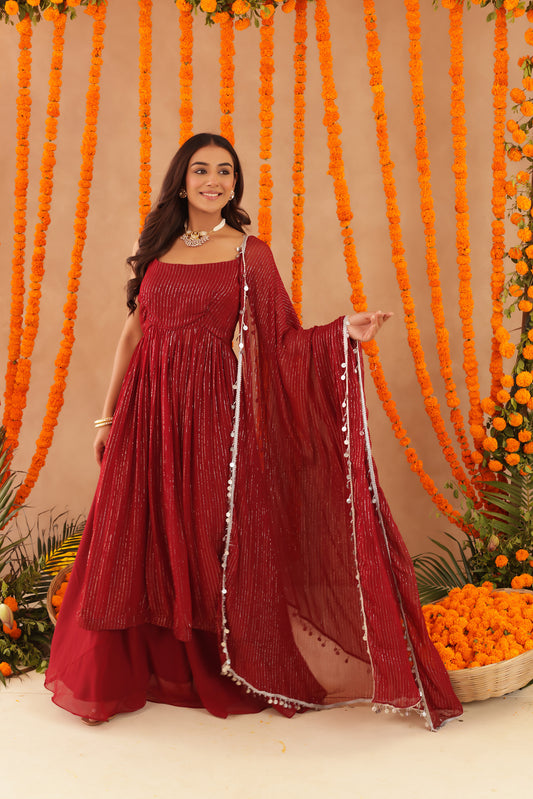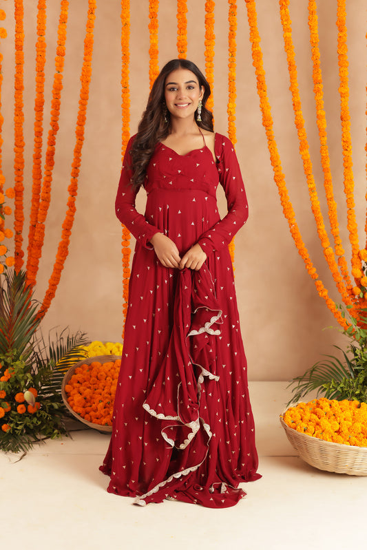 25% OFFISHANI RED ANARKALI SET