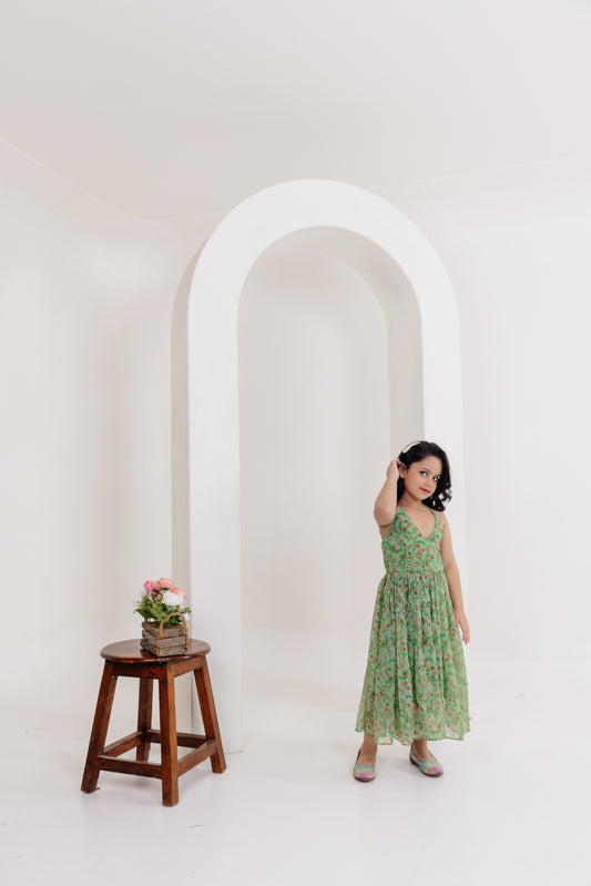ISA SAGE GREEN FLORAL PRINTED DRESS