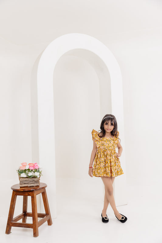 ISLA YELLOW FLORAL PRINTED COTTON DRESS