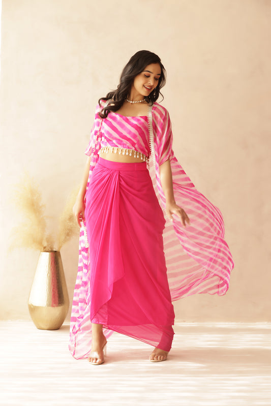 IVY MAGENTA PINK DHOTI SET WITH CAPE
