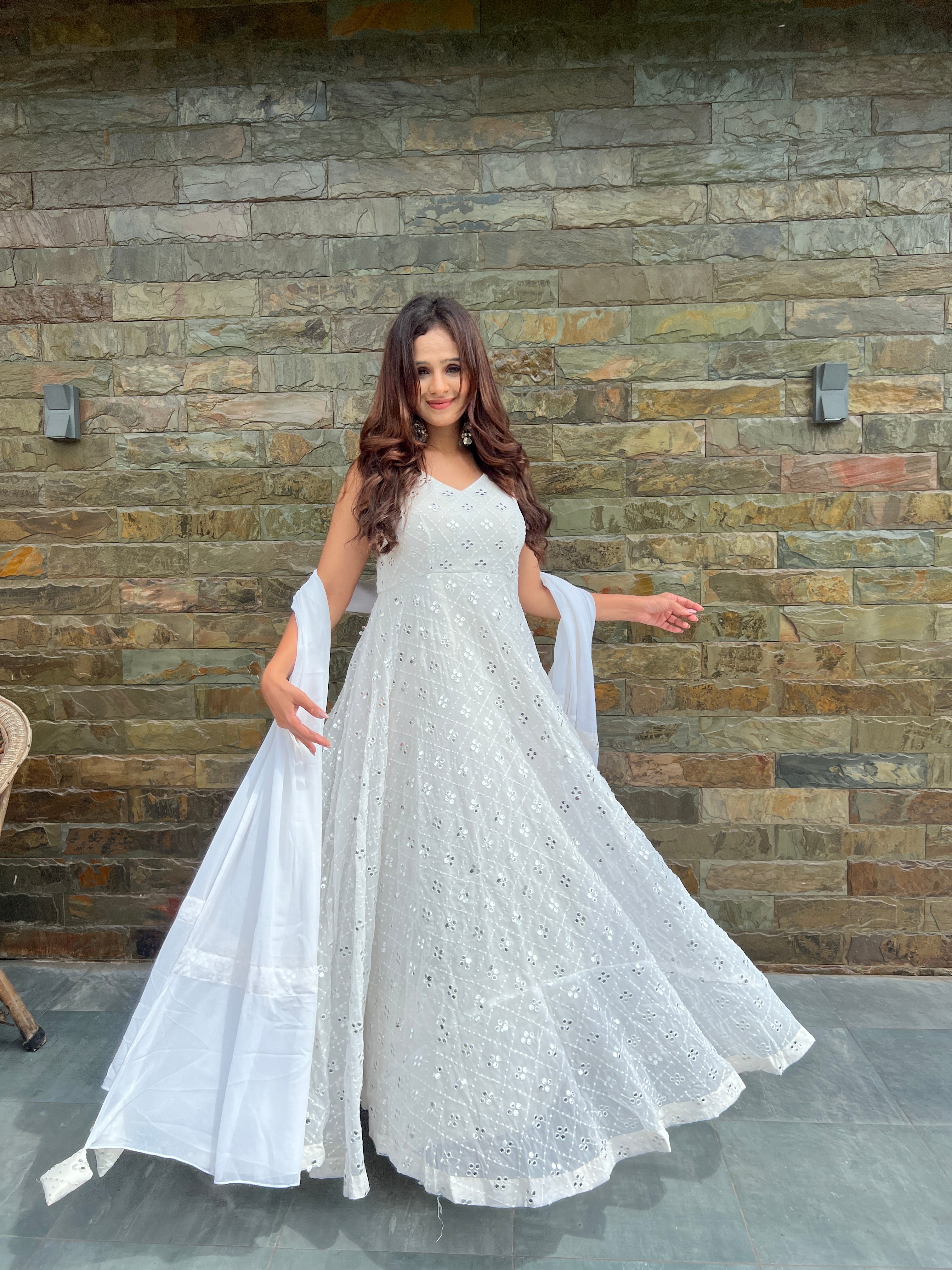 FEATURING IN OUR NITHYA CHIKANKARI WHITE ANARKALI SET