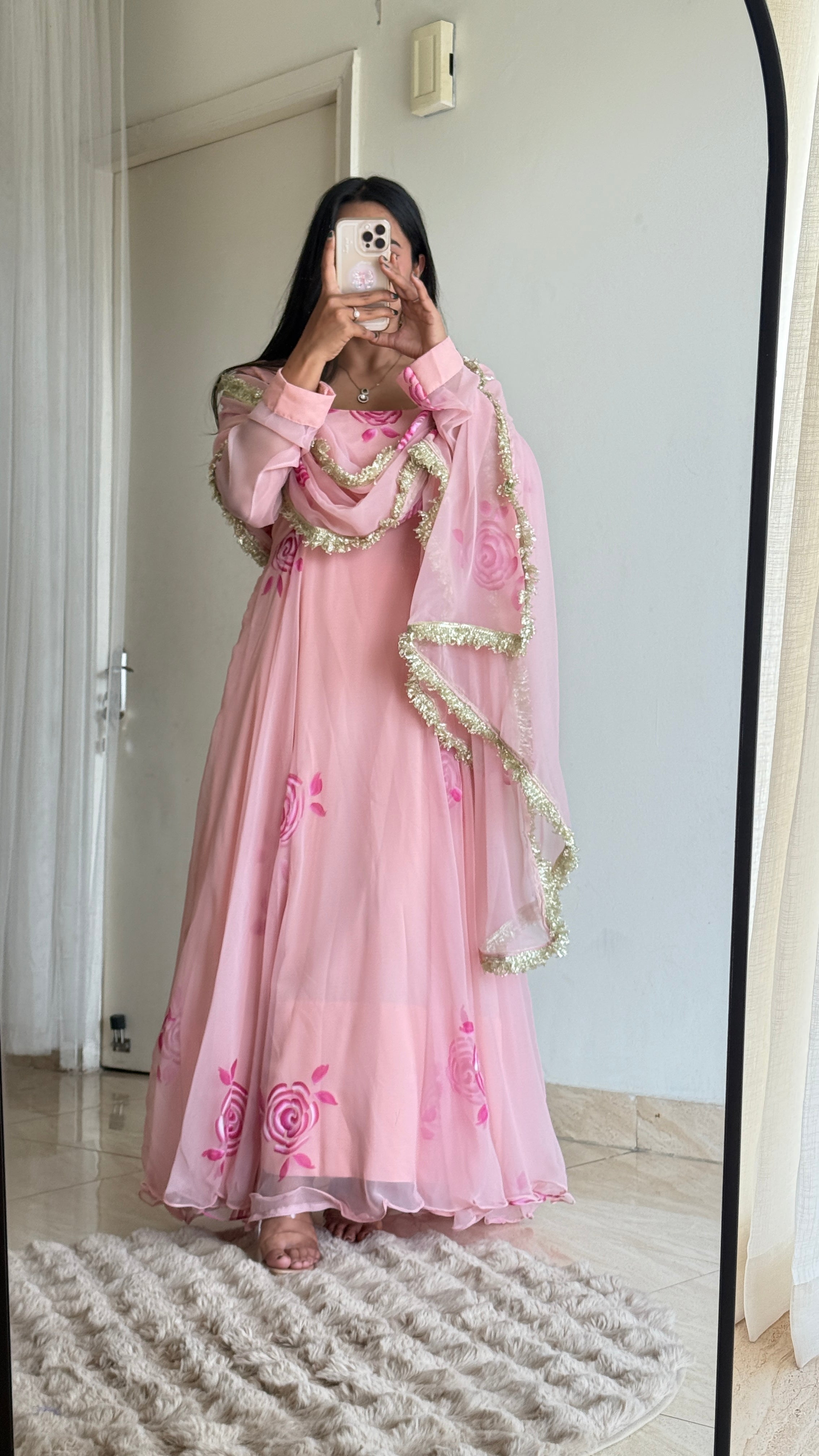 FEATURING IN OUR KAVINI PASTEL PINK HANDPAINTED ANARKALI SET