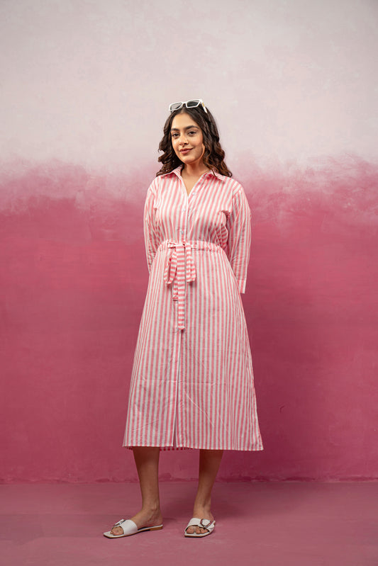 DEVINA PINK STRIPED A-LINE MAXI DRESS