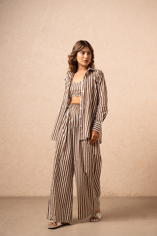 EVIE 3 PIECE BROWN STRIPED COORD SET