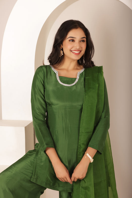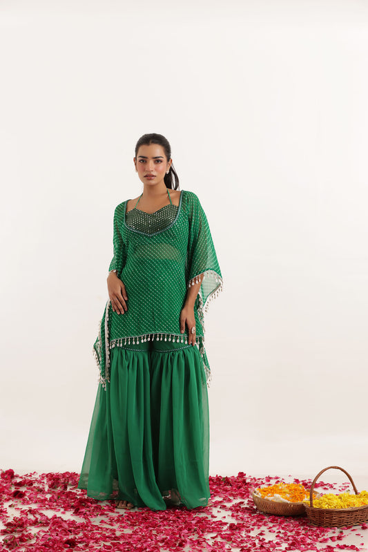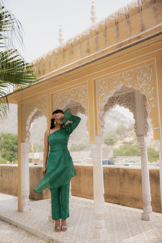 AISHAA DARK GREEN LEHERIYA COORD SET