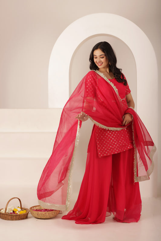SAMEEN GOLDEN BUTI PINK PALAZZO SUIT SET