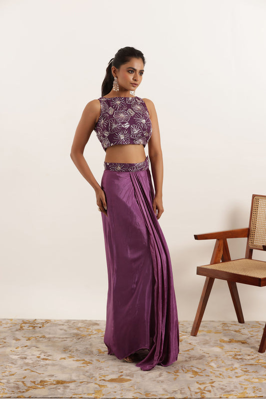 NISHAAT REGAL PURPLE SILK PRE DRAPED SAREE