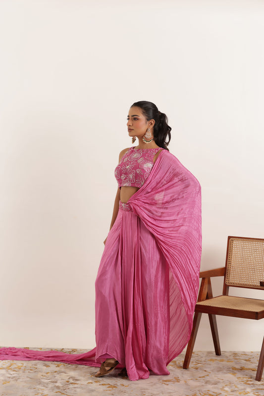 GIA FRENCH ROSE PINK RUFFLE SAREE