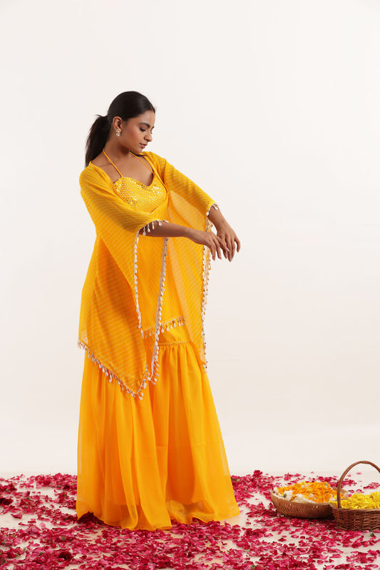 10% OFFARIKA YELLOW LEHERIYA COORD SET