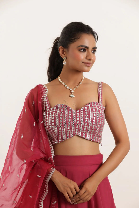 ASHA MYSTIC MAROON DETAILED LEHENGA SET