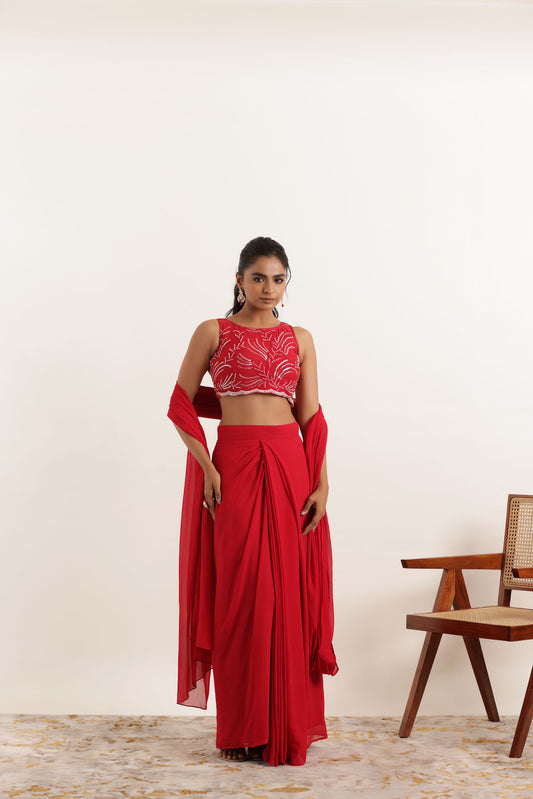 60% OFFARIA CHERRY RED PRE DRAPED SAREE