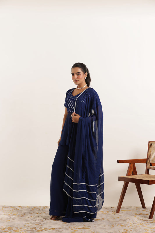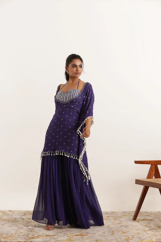 SITARA BLUE ANGRAKHA SHARARA FUSION SET