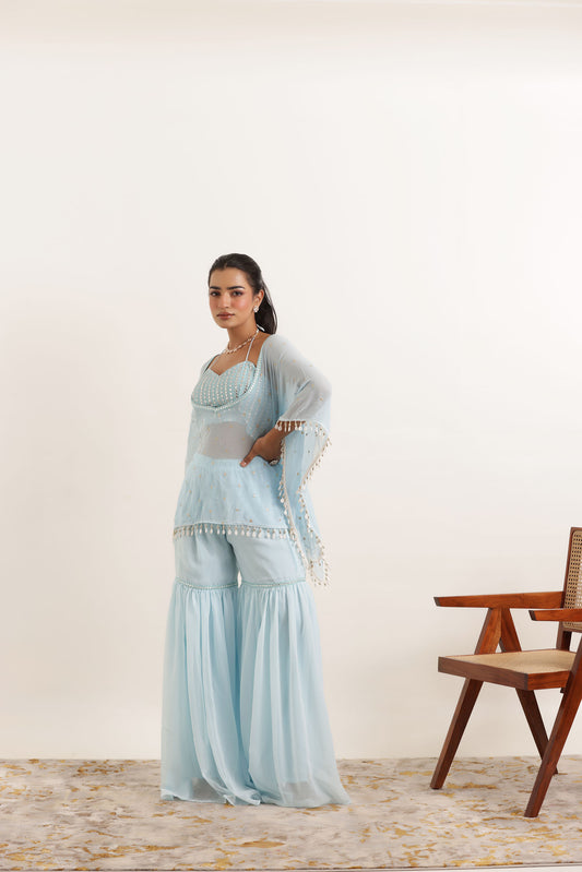 ARYA POWDER BLUE KAFTAN SHARARA FUSION SET