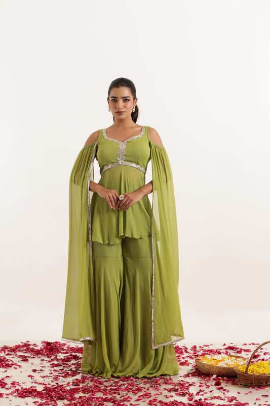 VAANYA BRIGHT GREEN DETAILED COORD SET