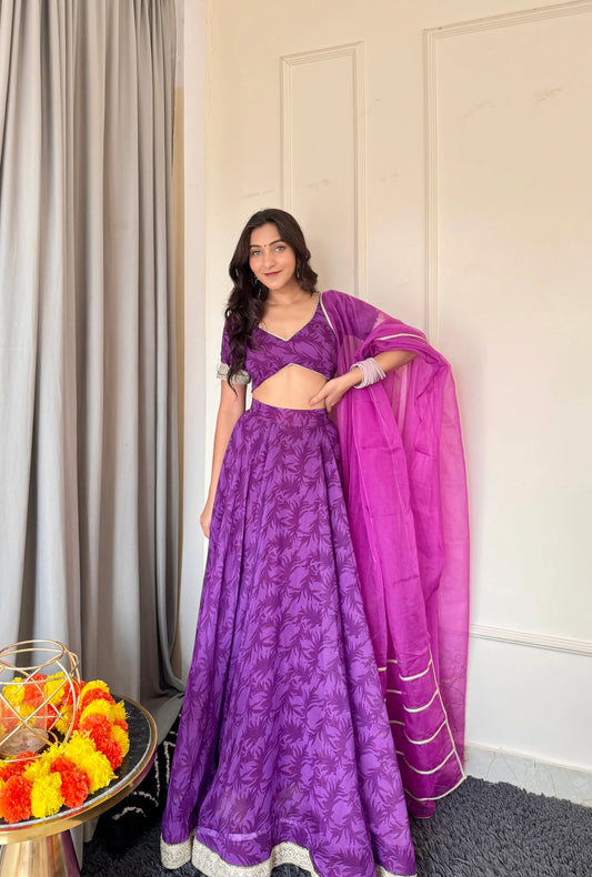 NEA PURPLE FLORAL PRINTED DETAILED LEHENGA SET
