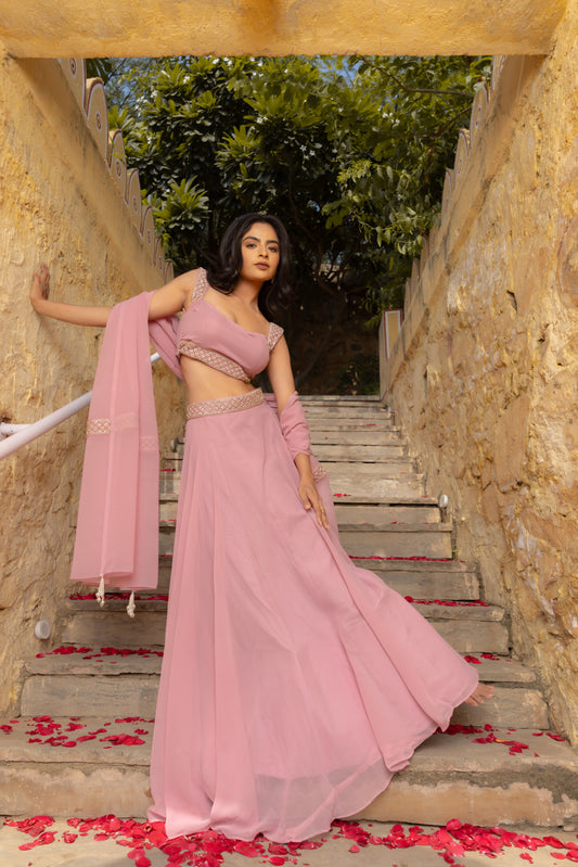 TARINI PASTEL PINK DETAILED LEHENGA SET