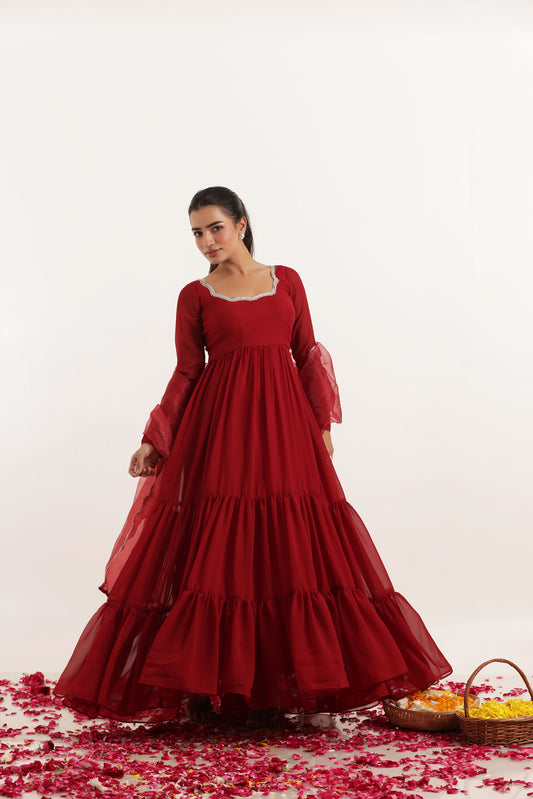 40% OFFRIVAAZ MAROON RED SHRUG SET