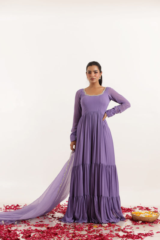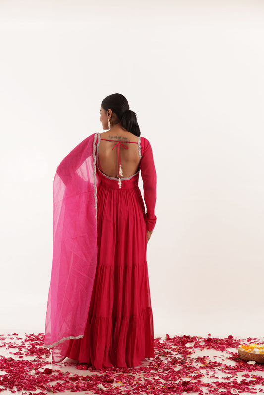 ISHITA MAGENTA PINK TIERED ANARKALI SET