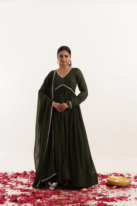 35% OFFSHAKTI DARK GREEN ANARKALI SET