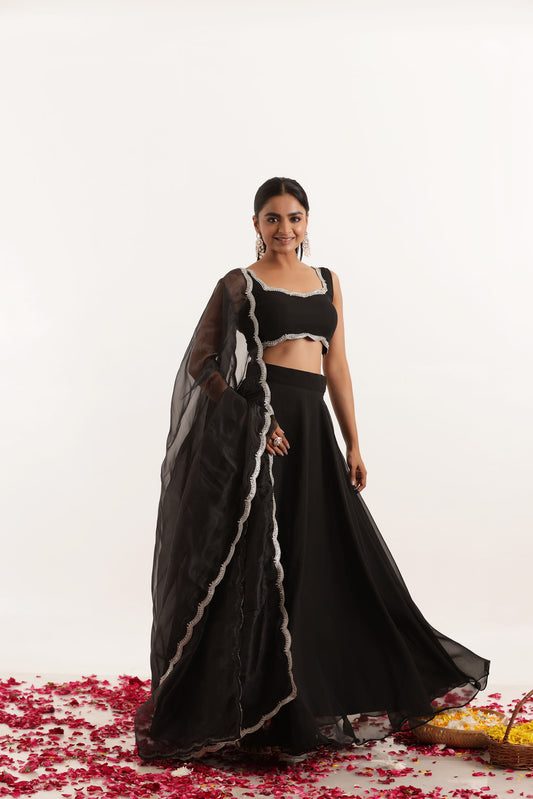 33% OFFLEELA BLACK DETAILED LEHENGA SET