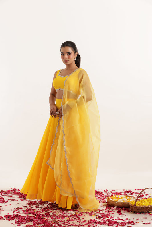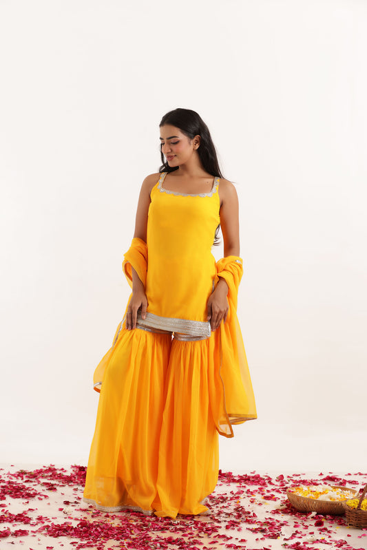 33% OFFNEHA YELLOW DETAILED SHARARA SET
