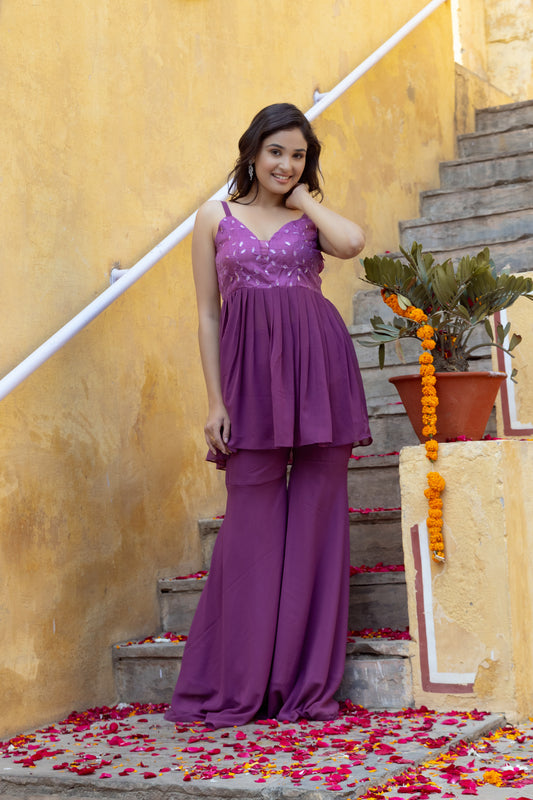 43% OFFRHEA MAUVE DETAILED COORD SET