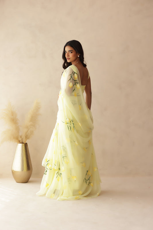43% OFFESHANYA YELLOW HANDPAINTED SAREE