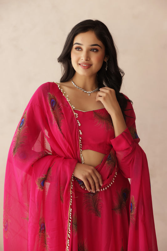 PARINA PINK PEACOCK FEATHER LEHENGA