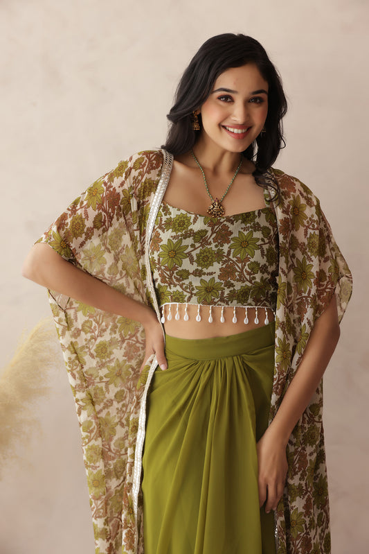 25% OFFSAEE GREEN FLORAL SHARARA SET