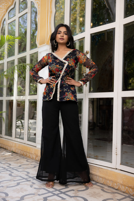 ZIA MIDNIGHT BLUE FLORAL PRINT COORD SET