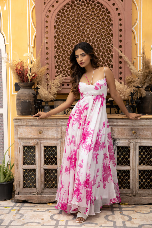 HAZEL PINK FLORAL PRINTED MAXI DRESS
