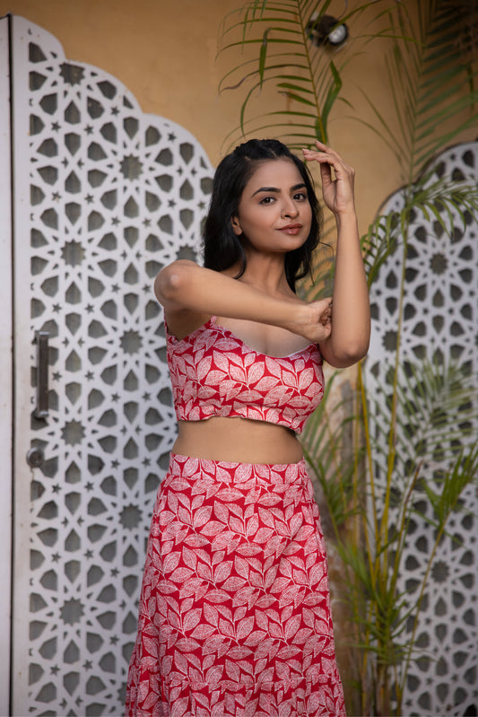 ORIN RED COTTON LEAF PRINTED CO-ORD SET