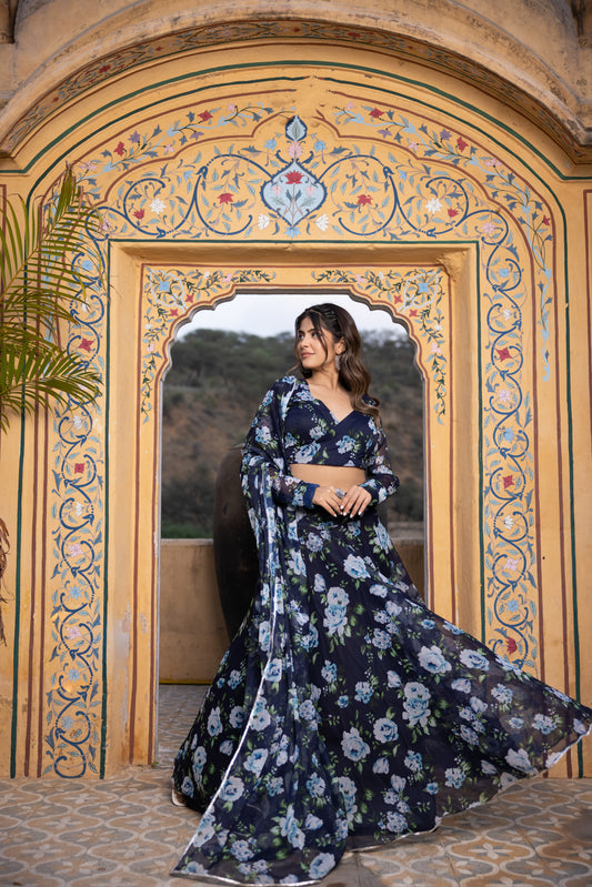SAIRA BLUE FLORAL PRINTED LEHENGA SET
