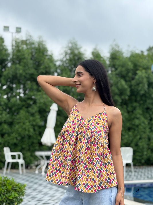 SUHANA YELLOW COTTON HALTER NECK SHORT KURTI