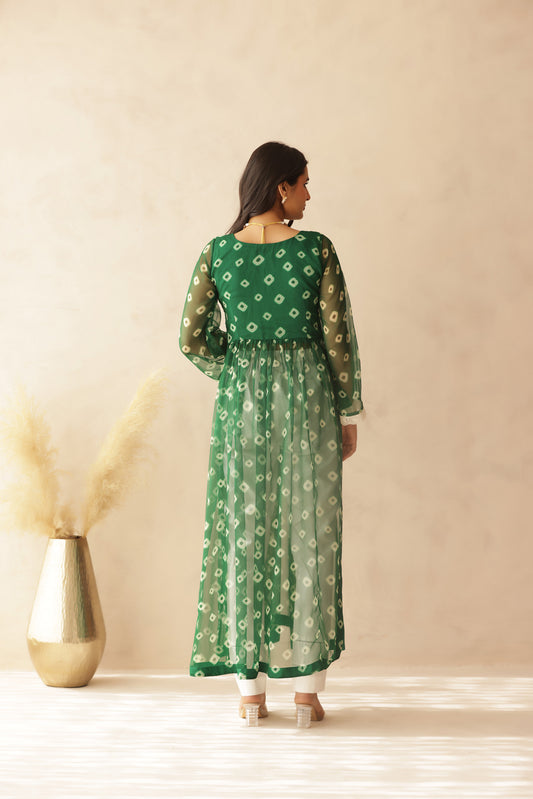 26% OFFHANIA GREEN BANDHEJ KURTA SET