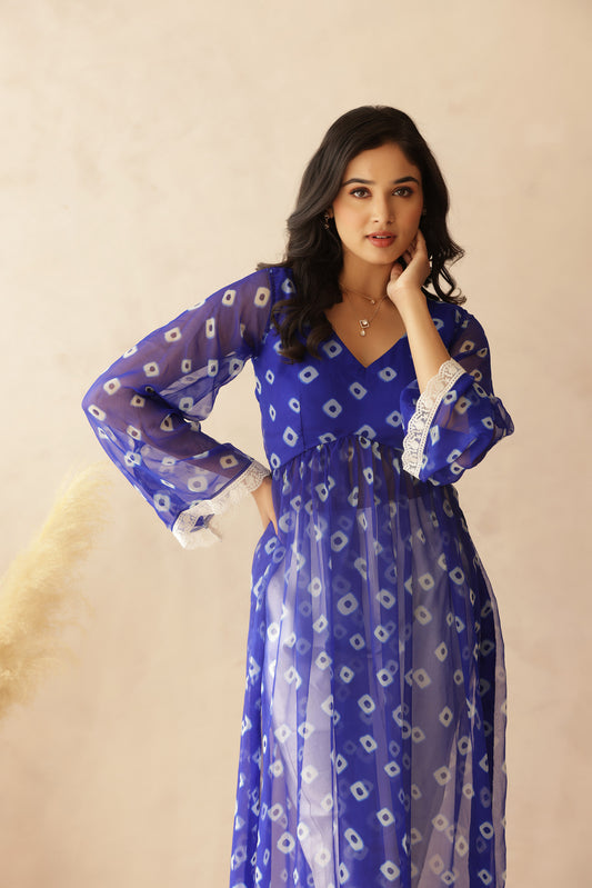 26% OFFNAVYA BLUE BANDHEJ KURTA SET