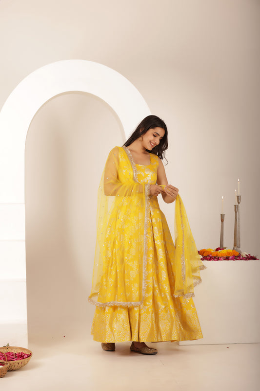 AKSHARA YELLOW BROCADE ANARKALI SET