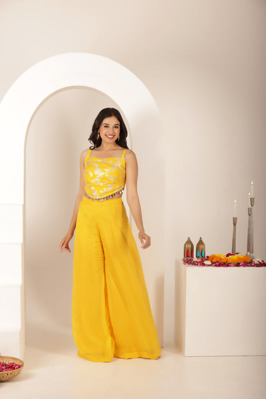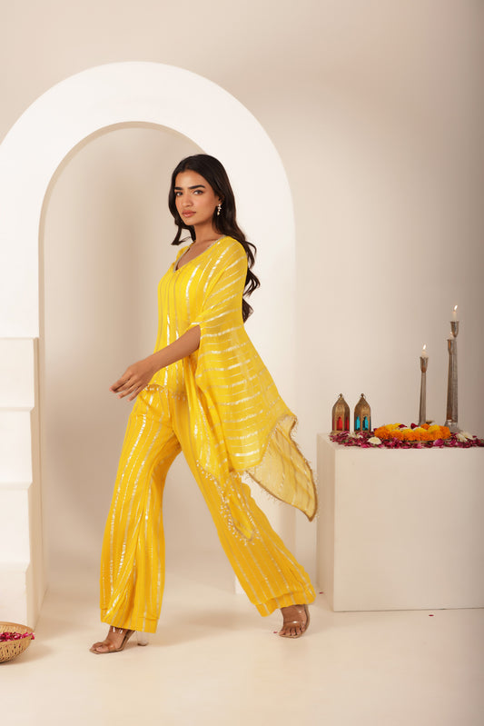 SHAMYA YELLOW BROCADE FUSION COORD SET