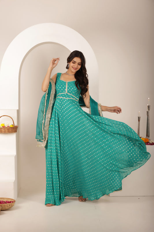 33% OFFSANDHYA GREEN BUTI ANARKALI SET