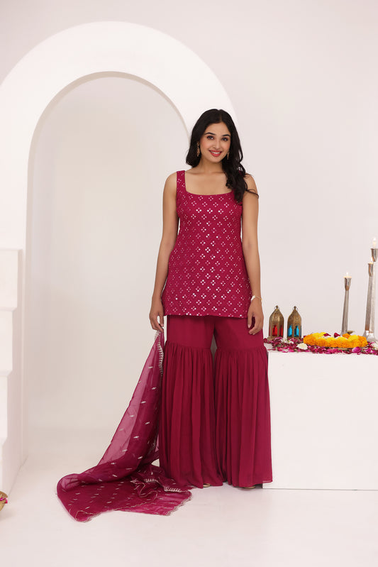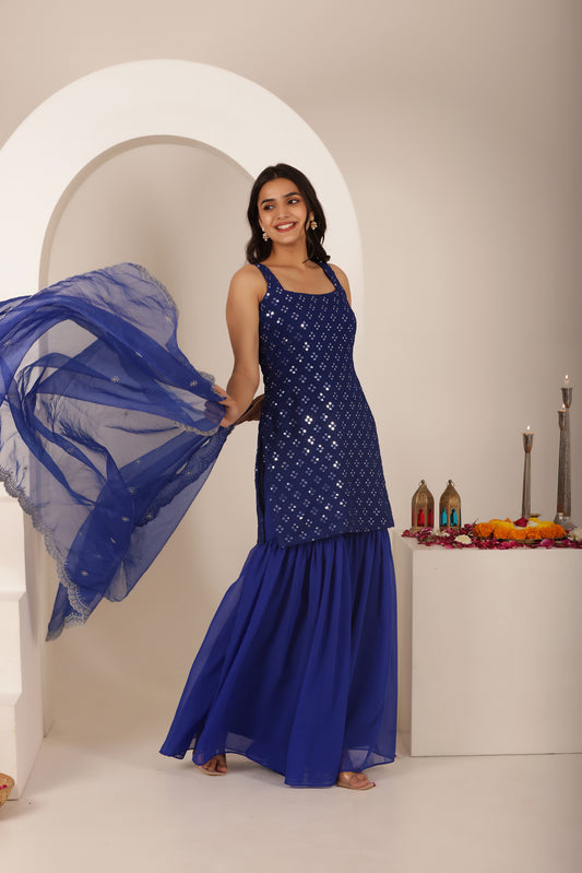 KEERTHI BLUE CHIKANKARI SHARARA SET